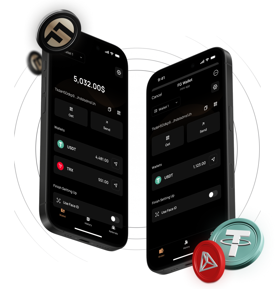 FG Wallet is a secure, self-custody wallet for USDT (TRC20) on the TRON network. It eliminates TRX fees and KYC requirements, giving you full control and privacy.